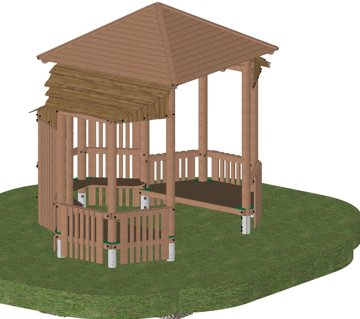 Walmdach, und Brüstungen aus Douglasie