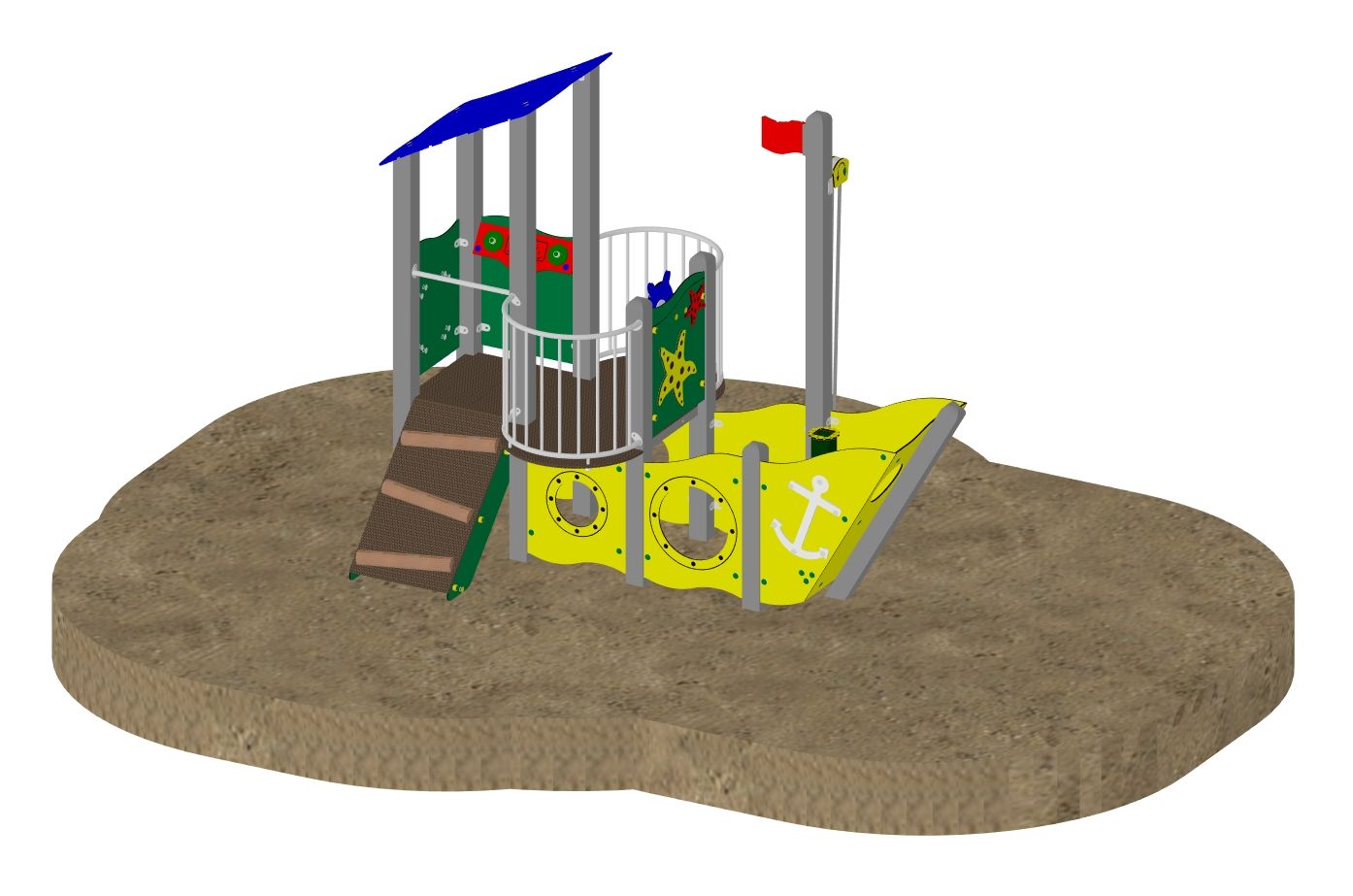 - Mast mit HPL-Fahne und Sandaufzug
